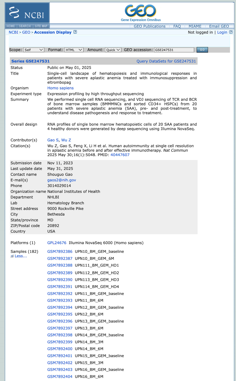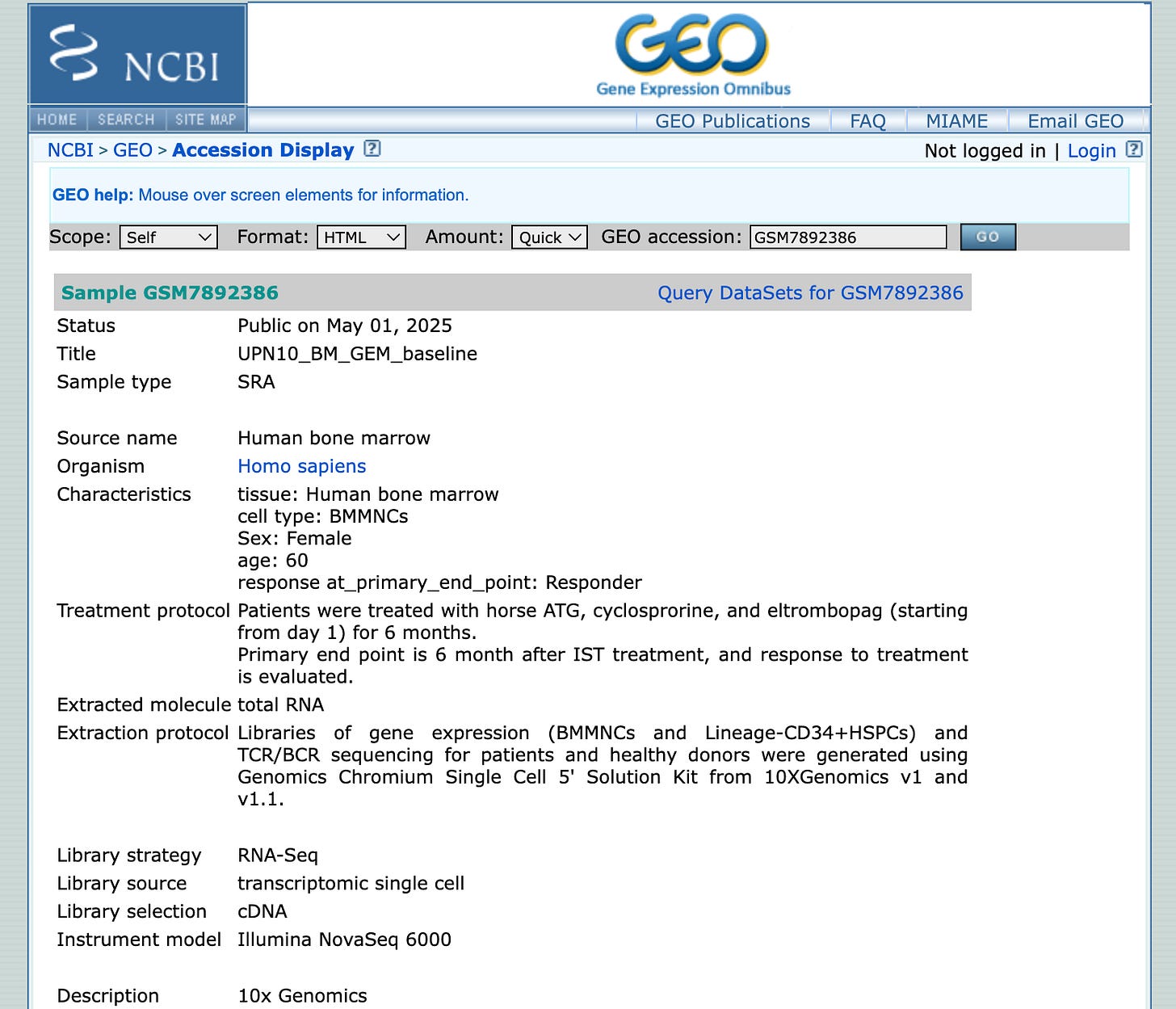 We see that the data is available in GEO. Let’s take a look at the accession: